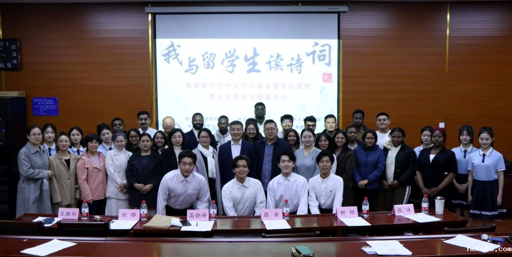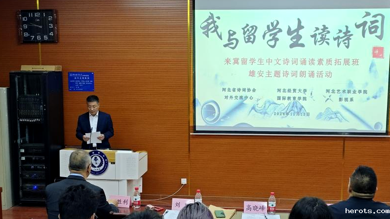 11月13日,由河北省诗词协会对外交流中心策划统筹,18luck快乐彩影视系和河北经贸大学国际教育学院共同承办的“未来之城,雄安之师,四海之咏”——中外大学生雄安题材诗词朗诵会活动在河北经贸大学成功举办。