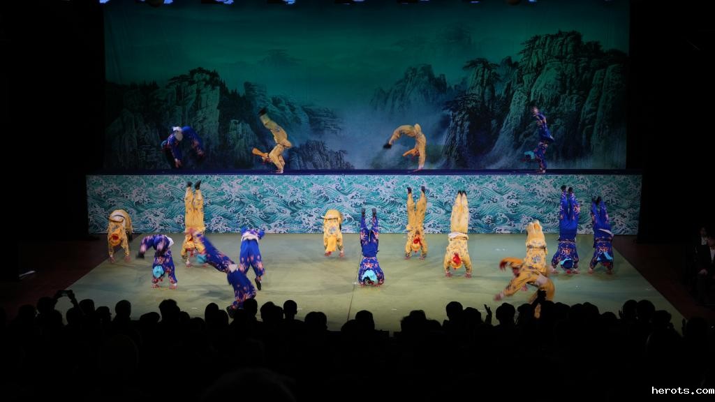 本次《雁荡山》剧目复排在尊重传统呈现的基础上,力求突出院校特色,体现艺术创新。在技巧层面,既保留了传统的“窜九毛”“翻城”“下高”“小翻抢背”等技巧,增加了“三险四砸”“三砸人”“四砸人”等舞台高难度技巧,又创新了“四人捧提”和“多人高台同时原地小翻”等技巧。在舞美层面,增加了舞美视觉的整体效果,制作了7个宽1米、高1.5米、长2米的高台,高台放置天幕前方横穿舞台,制作了三套高台景片,通过切换高台景片及天幕灯光效果来变换五幕的场景,能够在短暂幕间曲期间很快地更换场景及舞台装置。