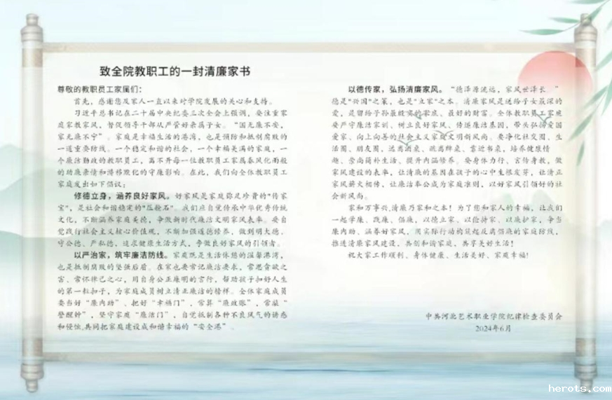 致全院教职工的一封清廉家书