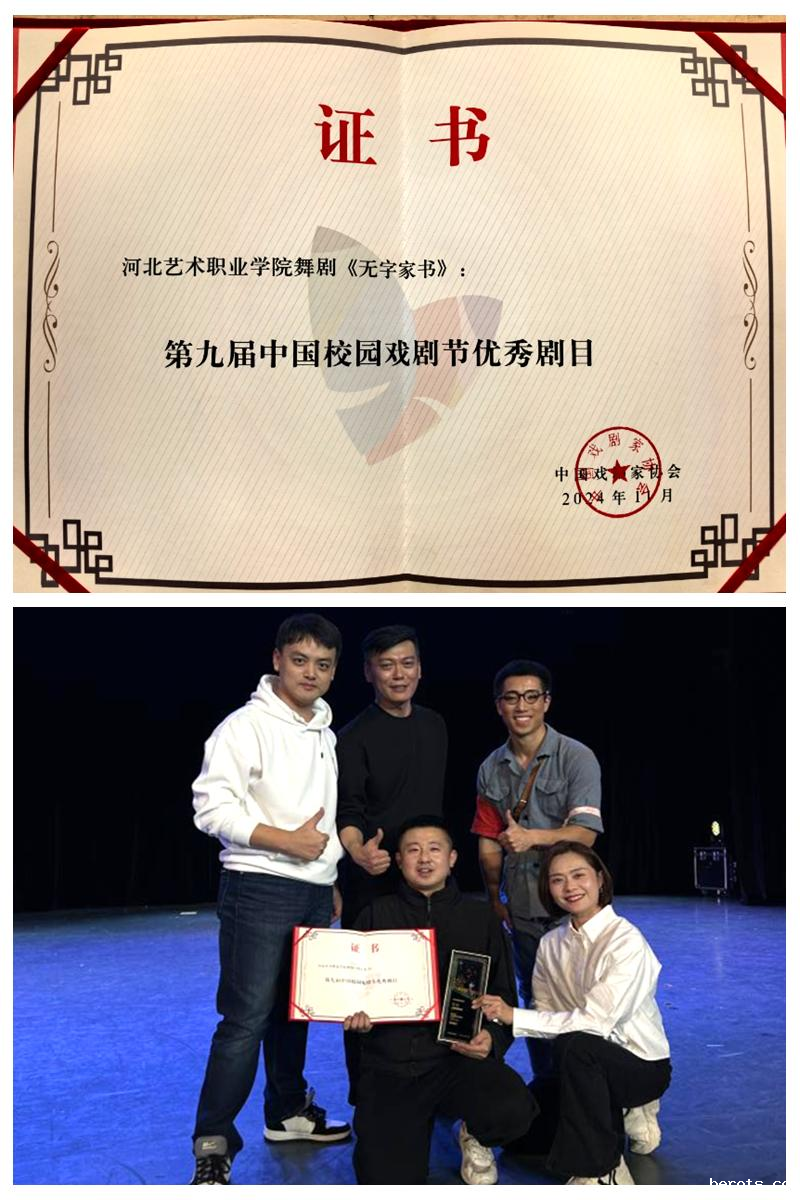 创办于2008年的中国校园戏剧节,是面向全国校园、以学生为主体的国家级校园戏剧活动,每两年举办一届。“中国戏剧奖·校园戏剧奖”是中宣部批准的国家级文艺常设奖项,与梅花表演奖、曹禺剧本奖、优秀剧目奖、小戏小品奖、理论评论奖,同为中国戏剧奖的子奖项,该奖项每两年评选一次,是唯一由国家设立的校园戏剧最高奖。在河北省剧协的大力支持下,我院舞剧《无字家书》在全国范围内报送的355部作品中脱颖而出,与其他23部剧目成功入选2024年第九届中国校园戏剧节展演活动。这不仅是我院在该类文化艺术展演活动中的首次入选,也是河北省唯一一部入选的艺术作品。