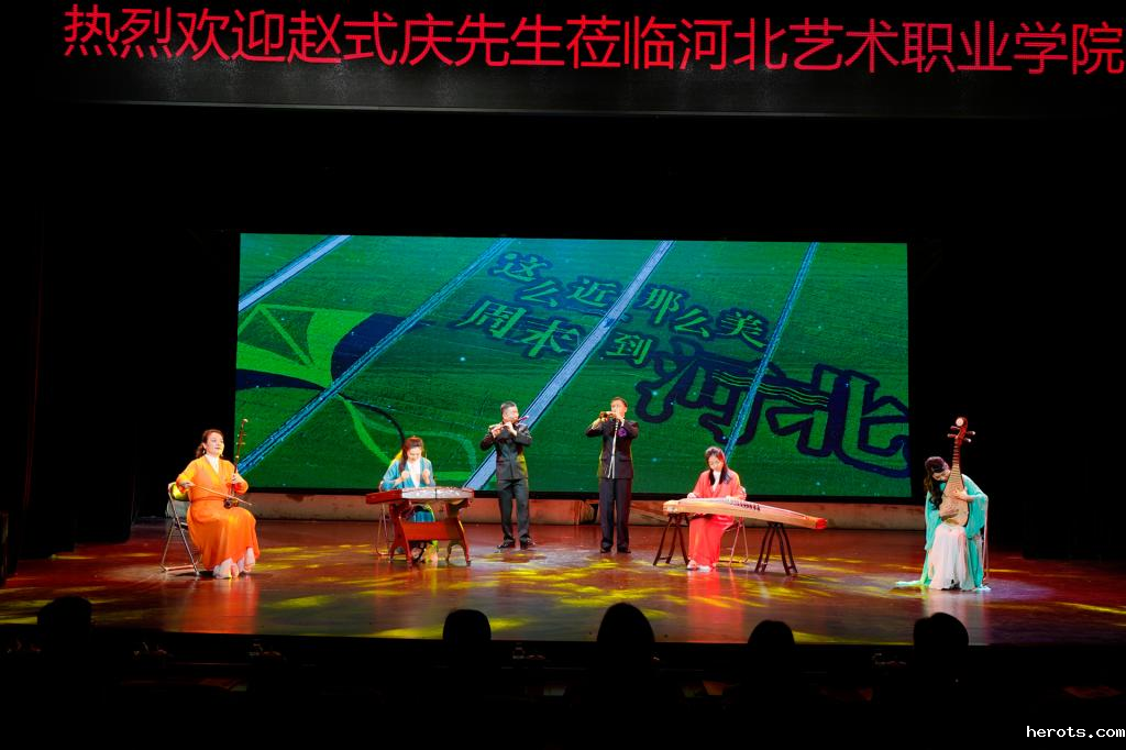 赵先生对学院在传统文化传承创新方面的工作给予了高度肯定。他表示,看了你们的精彩演出大受鼓舞、很受启发,演出把传统文化、非遗内容通过艺术形式进行了很好的探索、融合,师生们都训练有素、功底深厚。学院在坚守传统的同时勇于创新,更难得的是师生们对艺术的热情投入。河北拥有丰富的文化和各类资源,自古以来就是中国文化多民族融合的集大成的地方,我从你们的文化基因和演出里面看到了很大的潜力,相信你们未来的创意会给全国各地带来很多新的启发,期待未来有更多的交流机会。