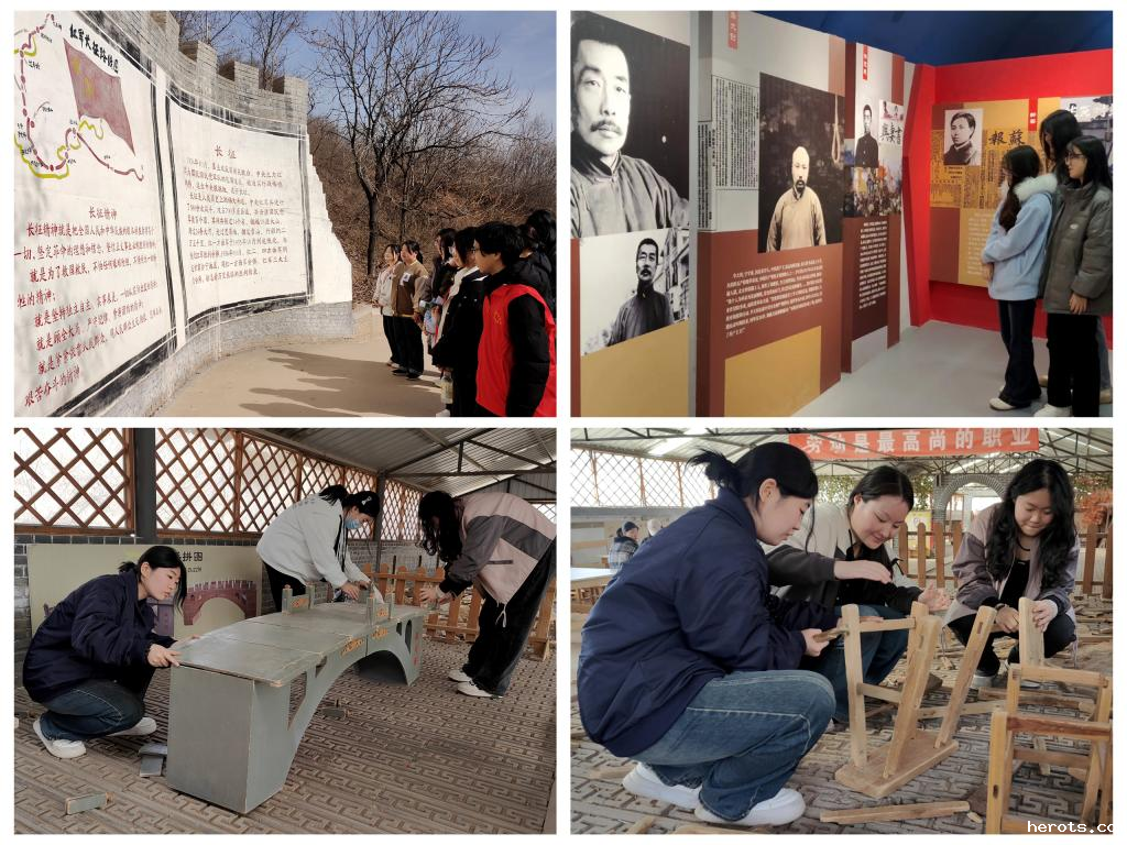 植树活动结束后,美术系师生集体参观了中华正气馆,并观看了实景剧《英雄王二小》,剧中烟火与威亚特技重现抗战场景让全体师生深刻感受到革命先辈的奉献精神。美术系党支部还在“劳动教育体验馆”设计了丰富劳动教育项目、手工艺项目。师生动手体验织布、造桥、板凳制作等项目,感受劳动人民的智慧与艰辛。