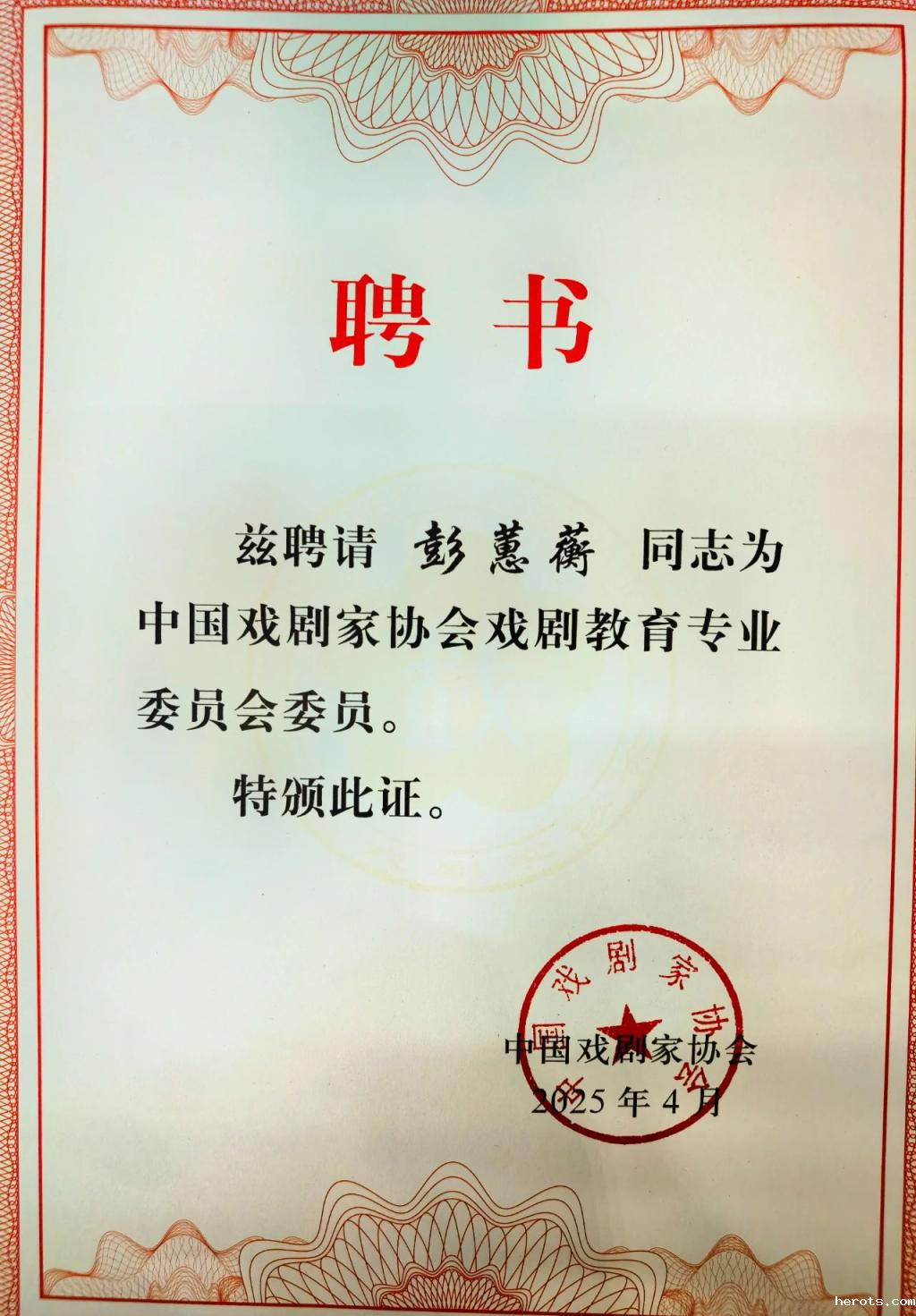 近日,中国戏剧家协会戏剧教育专业委员会成立会议在苏州召开,18luck快乐彩学术委员会主任、戏剧系剧目教师彭蕙蘅被聘为第一届戏剧教育专业委员会委员。