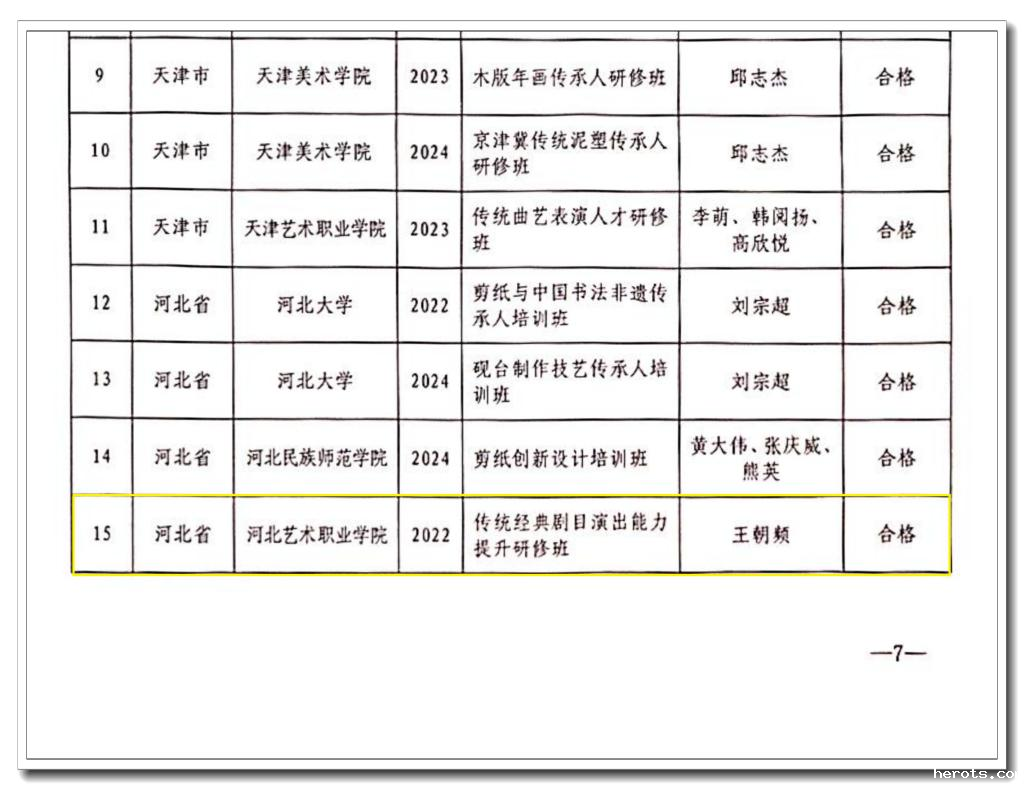 近日,在文化和旅游部正式公布的“中国非物质文化遗产传承人研修培训计划”2023-2024年度绩效考核结果中,由18luck快乐彩承办的“2024年传统鼓曲非遗传承人研修班”获“优秀”等次;“2022年传统戏剧非遗传承人研修班(蔚县秧歌)”和“2022年传统戏剧非遗传承人研修班(评剧)”获“合格”等次。