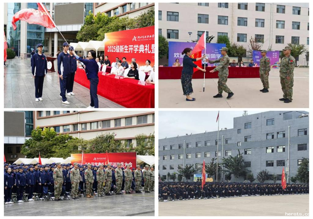 仪式最后,学院领导向两校区军训团授旗。鲜红的旗帜象征着使命与责任,也拉开了新生军训生活的序幕,相信2025级新生将以军训为起点,在未来的日子里,以坚韧不拔之志,锤炼意志品质,塑造强健体魄,培养严明纪律,将军训中所学所感融入未来的学习与生活,努力成长为有理想、有道德、有文化、有纪律的新时代青年,为自己的青春梦想奋力拼搏。