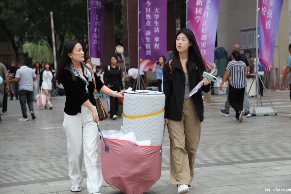 青园街校区依托成熟的艺术教学环境融入迎新场景,让新生初入校园便感受专业魅力;漓江道校区以青春为主题,布置展示等互动环节,志愿者们身着统一服装,引导新生完成注册、入住、领取物资等流程,“一对一”帮提行李、解答疑问,用热情驱散新生的陌生感。