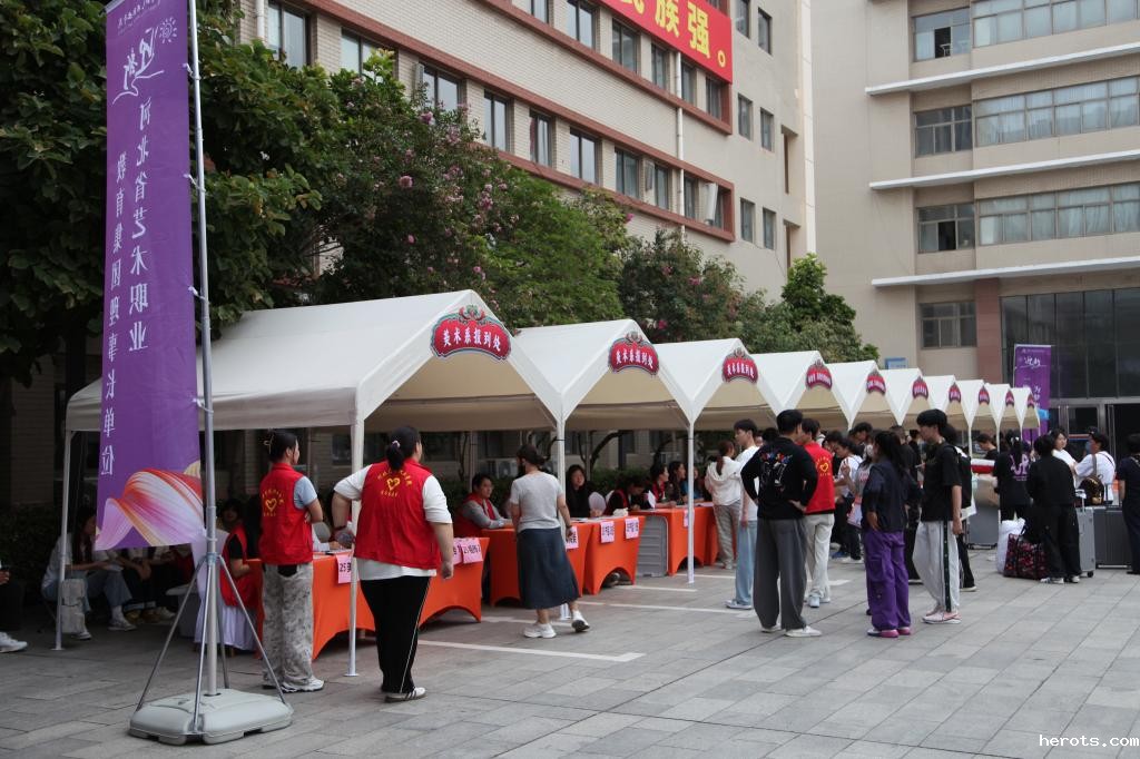 校园内彩旗招展、艺术元素点缀其间,师生志愿者全程护航,体现出艺术院校独有的温度与情怀。