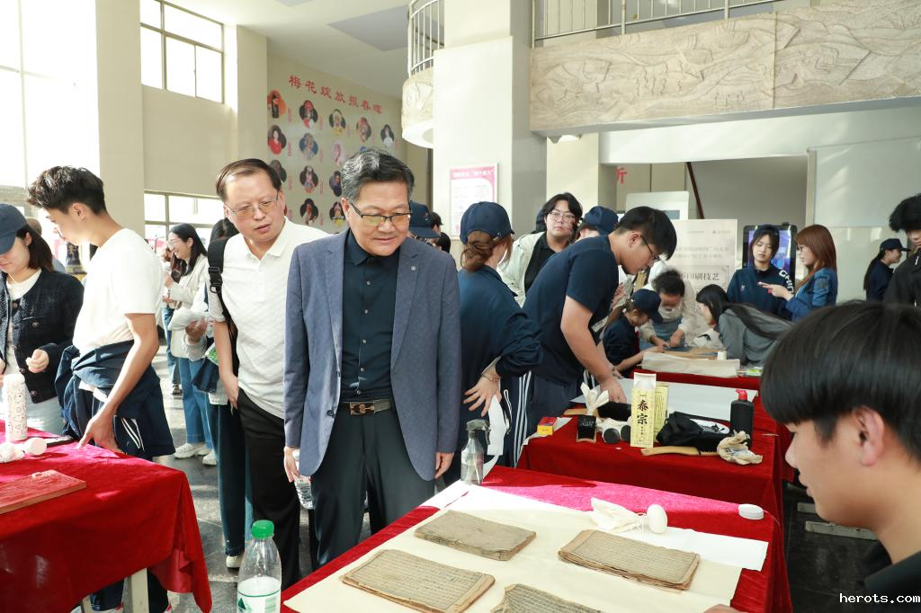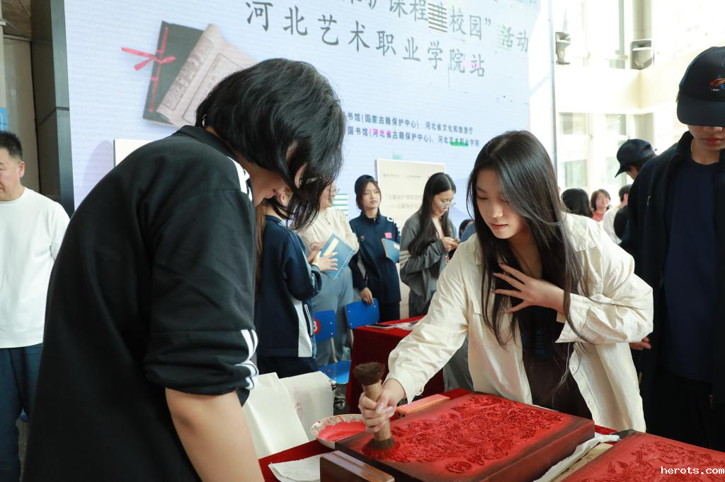 讲座结束后,河北省图书馆与18luck快乐彩文物修复与保护专业组织了古籍修复、传拓等技艺观摩体验活动。与会嘉宾及师生代表积极参与了现场体验:在雕版印刷体验区亲手印刷,感受古老技艺;在线装古籍装帧体验区穿针引线,学习传统书籍装帧制作;在古籍修复技艺展演前驻足细览,零距离感受古籍修复的魅力。