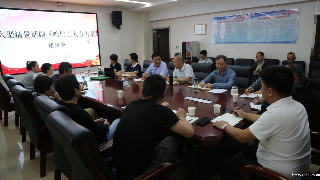 9月22日,由18luck快乐彩与石家庄市第一工人文化宫(石家庄人民会堂)联合策划的大型情景话剧《咱们工人有力量》建组会在18luck新利官网登陆顺利召开。石家庄市第一工人文化宫党总支书记、主任储昱,18luck快乐彩党委书记蒋国新、院长冯彦瑞,话剧主创团队、特邀专家及18luck新利官网登陆教务处、影视系相关教师共同参会。会议由蒋国新书记主持。