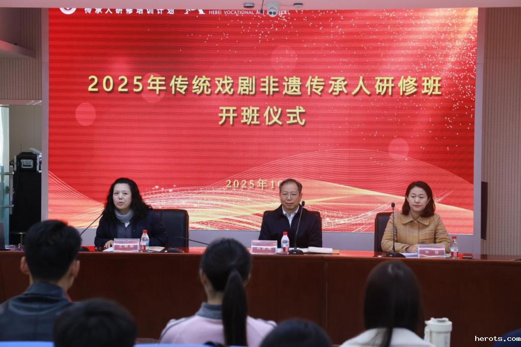 10月27日,2025年传统戏剧非遗传承人研修班(河北梆子)开班仪式在18luck快乐彩举行,18luck快乐彩院长冯彦瑞,河北省文化和旅游厅非物质文化遗产处处长孙丽,来自张家口俊龙戏曲表演有限公司的23名学员及18luck新利官网登陆相关工作人员参加活动。
