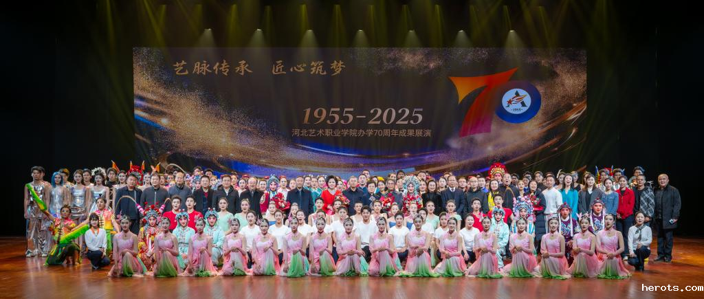 之后,现场嘉宾赴石家庄人民会堂欣赏了学院办学70周年成果展演(综合场)。整场演出通过“晨功·时光剪影”“经典·一脉相承” “多元·艺彩万象”“薪火·共赴新程”四个篇章融合了舞蹈、戏曲、音乐、时尚表演等艺术形式。演出以“无声的艺术叙事”为核心理念,通过肢体语言、光影艺术与经典旋律的有机融合,绘就一幅跨越七十载的艺术教育长卷。近800名师生演职人员倾情投入,全面展现了学院多元专业的教学成果与艺术创新的时代风采。