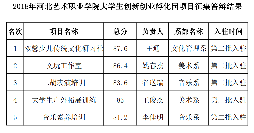 根据我院大学生创新创业孵化园建设工作日程安排,学院近日举办了创业项目征集答辩评审会。会上同学们围绕各自创业项目的创新点和市场需求等情况进行了认真讲解,回答了评委老师们的提问,现将评审结果公示如下,同时拟定了首批入驻孵化园的名单及入驻孵化园的场地安排。公示5日,如无异议,报请院领导批准,项目入驻孵化园。就业指导中心将进一步邀请社会创业成功人士,就入驻项目深度论证,给予多方的指导与支持。