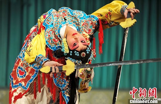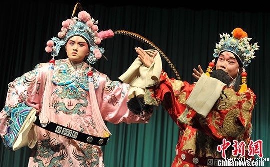 图为台湾戏曲学院师生合演《黄鹤楼》。 中新社记者 翟羽佳 摄