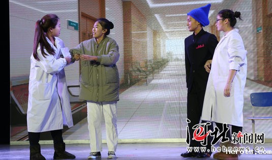 经过激烈比拼,美术系同学表演的小品《废耳de轰》获得一等奖。歌曲串烧《我爱你中国》、小品《看病》、哑剧《环卫工人》等节目分获二、三及优秀奖。《废耳de轰》演出了几位手机病患者进入手机病医院进行治疗的故事。同学们以幽默夸张的方式关注了当代人沉迷手机所形成的各种“病态”,讽刺了随着科技的发达,手机绑架了人们的生活,发人深省。