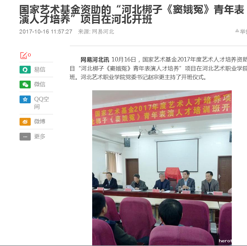 上一条:燕赵都市报:国家艺术基金2017年度艺术人才培养资助项目 “河北梆子《窦娥冤》青年表演人才培养”16日开班 下一条:长城网:国家艺术基金河北梆子青年表演人才培训班今日开班