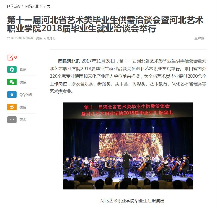 上一条:石家庄日报:毕业汇报演出展示专业技能 省艺术类毕业生供需洽谈会举行 下一条:石家庄日报:加强非物质文化遗产保护与传承 戏曲非遗传承人群研培班开班