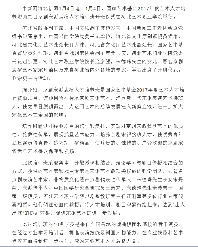 上一条:河北新闻网:国家艺术基金资助项目京剧宋派表演人才培训班开班 下一条:长城网:18luck快乐彩开展思政课实践教学展演活动