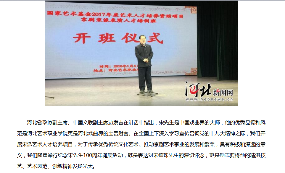 上一条:燕赵晚报:一代戏曲大家与石家庄渊源深厚 下一条:中新网:京剧宋派表演人才培训班开班 纪念四小名旦宋德珠百年诞辰