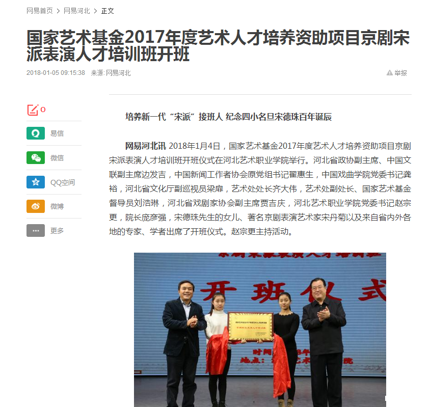 上一条:河北电视台:戏墨传承 艺聚冀中 国家艺术基金项目京剧宋派人才培训开班 下一条:河北青年报:京剧宋派表演人才培训班开班