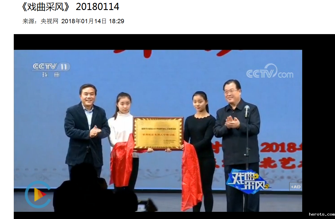 2018年1月14日,中央电视台戏曲频道(CCTV-11)戏曲采风栏目在第7分20秒时间,对在我院举行的纪念宋德珠诞辰百年暨宋派艺术培训班开班活动进行了报道。