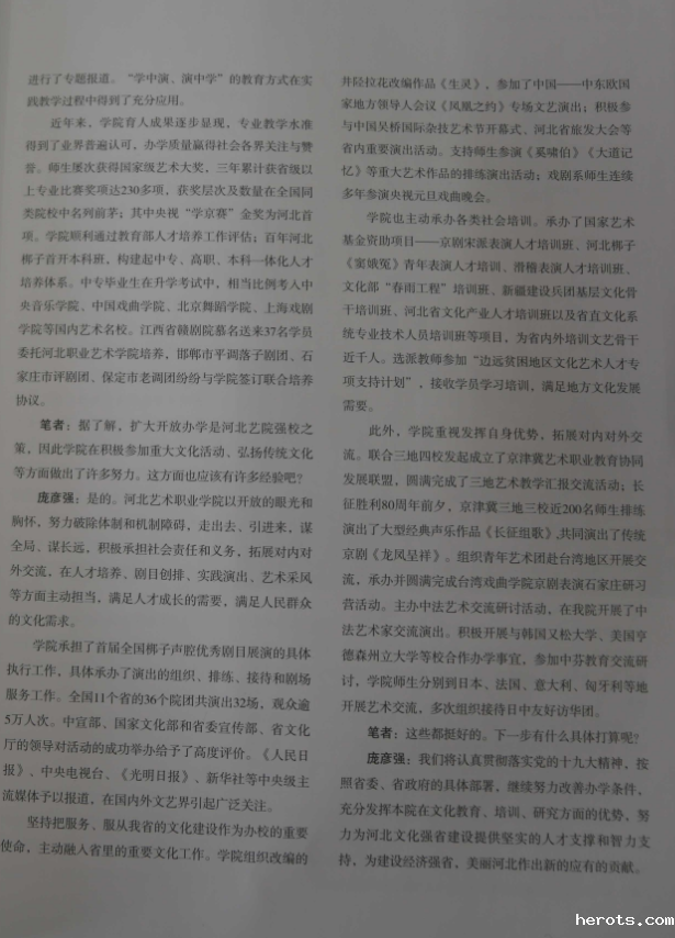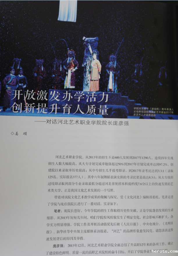 2018年第1期《文化河北》专稿刊登了《开放激发办学活力 创新提升育人质量——对话18luck快乐彩院长庞彦强》文章,全面介绍了学院近年来的办学成果。