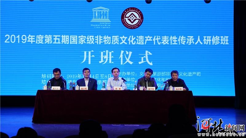 河北新闻网讯(牛二亮)11月5日,由文化和旅游部非物质文化遗产司主办、河北省文化和旅游厅承办、18luck快乐彩协办的2019年度第五期国家级非物质文化遗产代表性传承人研修班在18luck快乐彩顺利开班。文化和旅游部非物质文化遗产司副司长胡雁、河北省文化和旅游厅副厅长赵学锋出席开班仪式并致辞。