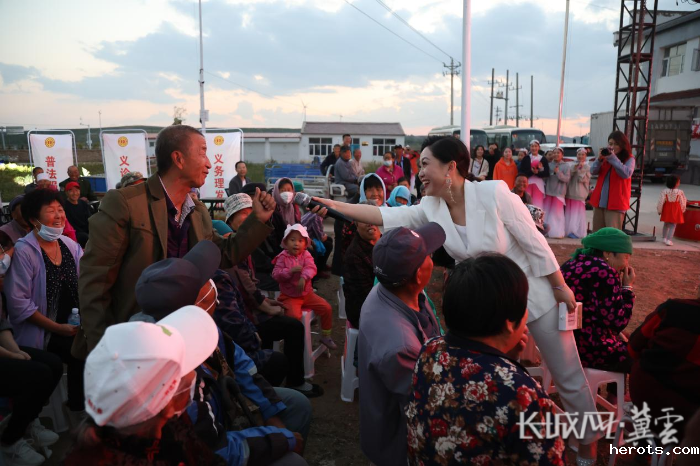 蒙古族民间舞《顶碗舞》、二胡齐奏《赛马》、河北梆子《盗仙草》、合唱《双脚踏上幸福路》……每到一村,村民们便从四面八方赶来,上至80多岁的老人,下至怀抱中的婴儿,个个欢欣鼓舞,兴高采烈。一些爱热闹、有特长的村民,还兴致勃勃与演出团队互动起来,一阵阵欢声笑语飘荡在广场的上空,村民们一天的劳累也一扫而空。