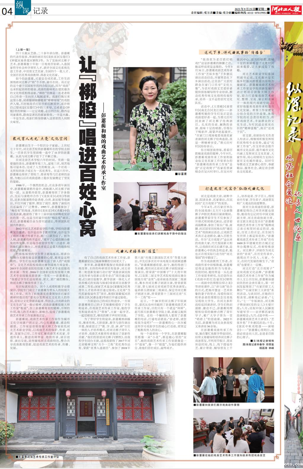 今年4月,在石家庄举办的全国戏曲(北方片)会演暨梆子声腔优秀剧目展演期间,彭蕙蘅带着学生不仅参加了开幕式和闭幕式演出,还冒着高温酷暑,参加了街头广场、商圈、社区甚至田间地头的“遇见艺术”戏曲演出活动,让戏曲艺术真正走进群众,融入百姓生活。作为“北方戏窝子”走出来的戏曲大家,代代梨园薪火相传,让戏曲在河北长盛不衰,是彭蕙蘅心中的执念和追求,她也正在用实际行动当好“河北梨园”的辛勤园丁。