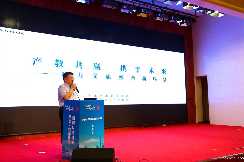 河北省文化和旅游厅党组成员、副厅长杨军在致辞中表示,此次举办承德·旅游演艺招商对接活动,是促进文化和旅游深度融合发展,推动旅游演艺出精品、出人才、出效益,丰富文旅产品供给的具体行动。以此次活动为契机,通过专家分享、企业推介、对接洽谈、项目观摩,汇聚各方力量把河北深厚的文化底蕴转化为生动可感的舞台艺术,加快培育“演出+旅游”融合模式,大力发展“演艺经济”,提升产业链辐射带动效应,补足发展短板,培育专业人才,引进高水平团队和创意,将短期的“流量”转化为长期的“留量”,让演艺引领旅游消费新风尚,成为文旅高质量发展的重要抓手。