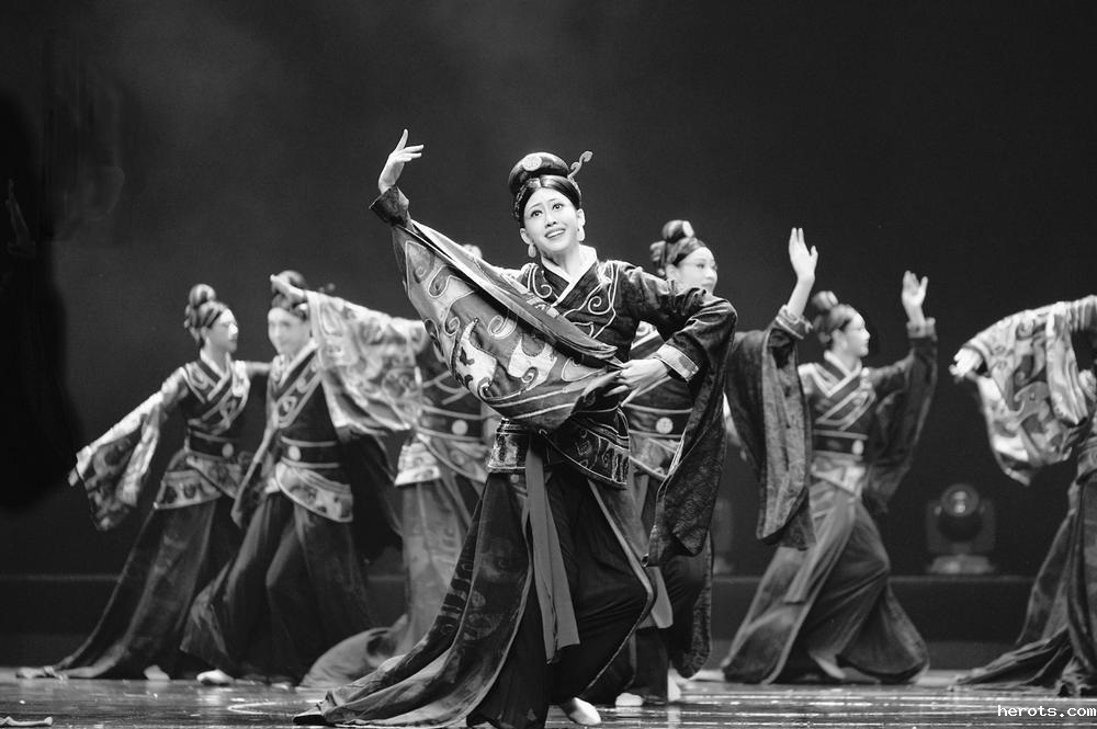 伴随着大气浑厚的配乐,20位身着玄色宽袍大袖衣裙的女孩子出现在舞台上。只见她们的舞步时而刚健遒劲,激越如全军列阵金鼓齐鸣;有时又灵动婀娜,欢悦如小鹿奔跑凤凰展翼。姑娘们的肢体、裙摆以及变换的队形,或缓或急、或柔或刚的舞蹈动作,都让人直观感受到了2000多年前那个传奇古国的猎猎雄风与苍茫余韵……