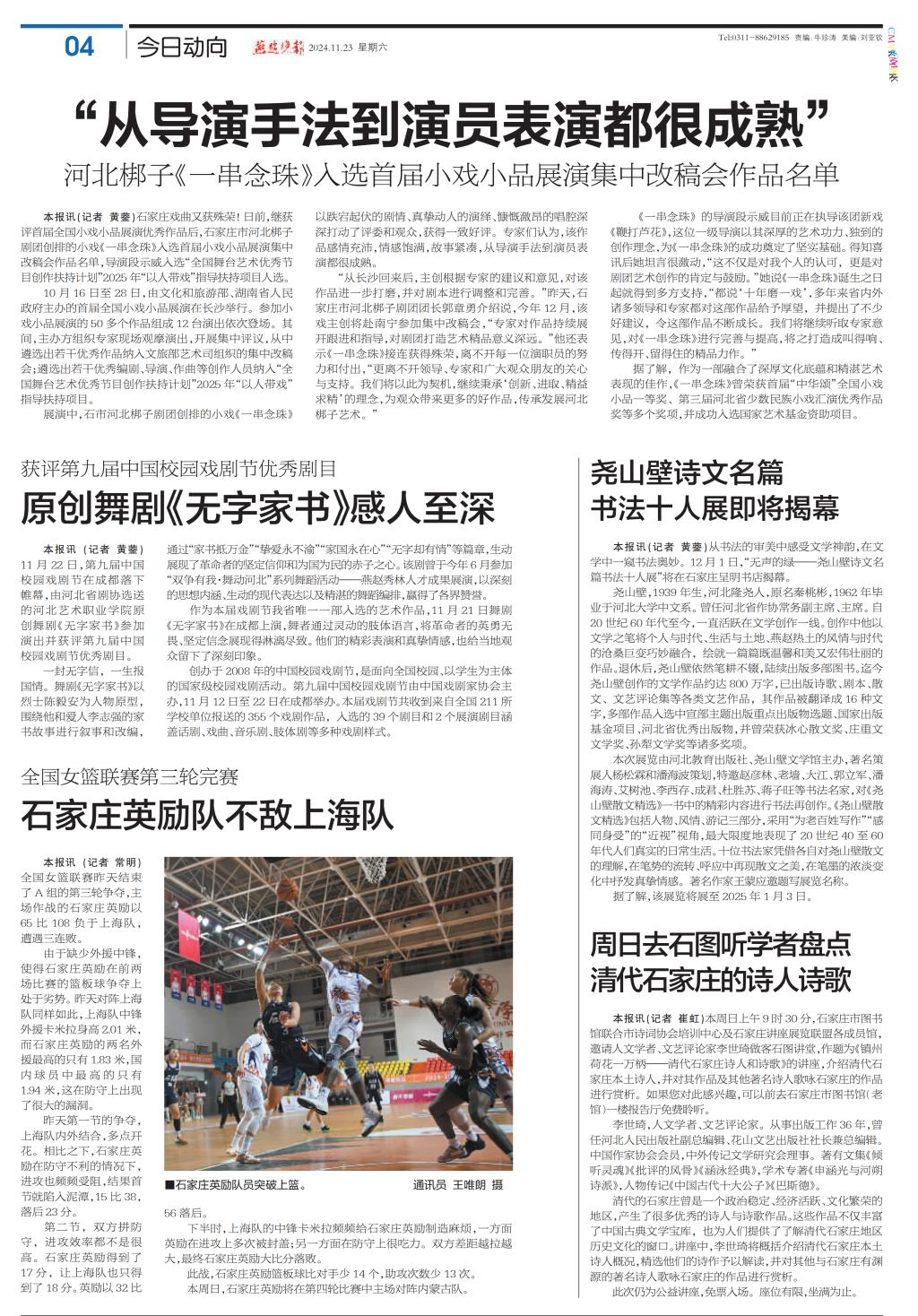新闻链接:http://yzwb.sjzdaily.com.cn/yzwbpaper/pc/content/202411/23/content_186151.html