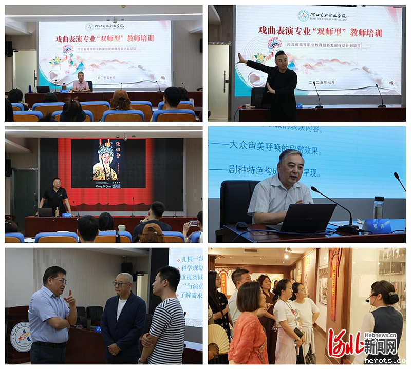 河北新闻网讯(毛志新)近日,河北省高等职业教育创新发展行动计划项目戏曲表演专业“双师型”教师培训班在18luck快乐彩举行,来自省内艺术院校、戏曲院团的戏曲专业专兼职教师近50人参加培训。18luck快乐彩党委书记蒋国新、院长冯彦瑞在培训期间与来自中国戏曲学院、国家京剧院、北京京剧院等艺术高校、国家院团的授课专家进行了深入交流。
