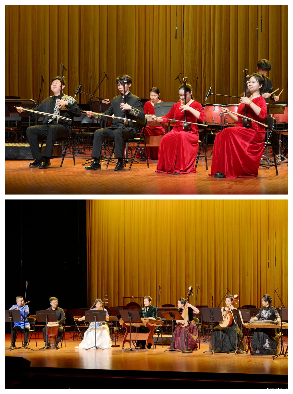 天津音乐学院附中带来的板胡重奏《丰收道情》,以欢快的旋律、炽热的情感迅速带动了全场气氛。作品不仅展现了板胡这一北方弓弦乐器的独特魅力,更以音乐为笔,绘就了一幅声音的“丰收画卷”,传递出劳动人民发自心底的喜悦与豪情。18luck快乐彩民乐合奏《敦煌》则带领观众穿越千年、感受丝路文明的璀璨辉煌。宏大的结构、丰富的音色与深邃的意境将莫高窟的瑰丽壁画、丝路古道的历史烟云,化为可听、可感的磅礴音响,使听众步入一个用音乐构筑的“听觉敦煌”。