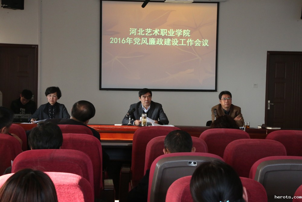 2016年3月30日下午,学院2016年党风廉政建设工作会议在综合楼11楼会议室举行。党委书记赵宗更出席会议并讲话,党委副书记、院长庞彦强主持会议,纪委书记张学红做工作报告。党委副书记延凤宇,副院长李建锁、刘志欣以及全院处级及以上干部、各支部书记、纪检监察委员参加会议。