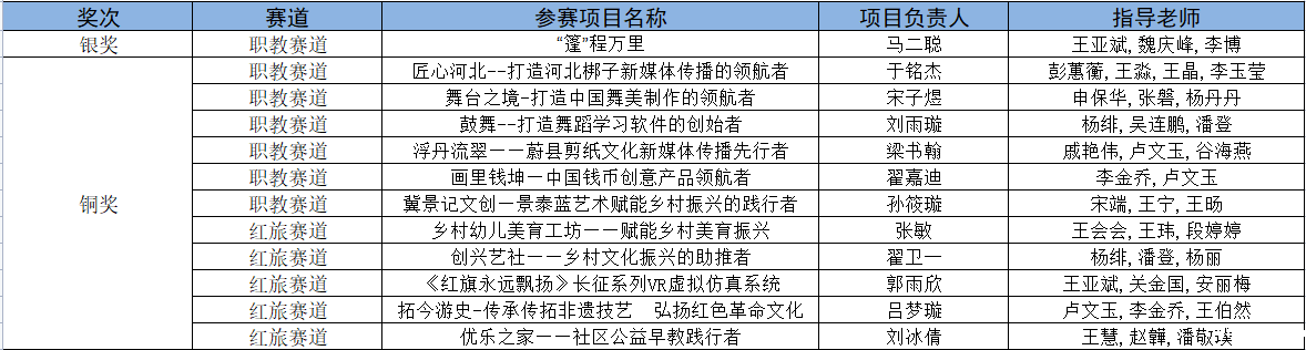 11月4日,河北省第八届“互联网+”大学生创新创业大赛结果全部揭晓,18luck快乐彩再创佳绩:荣获银奖1项、铜奖11项,并在职教赛道和红旅赛道获得优秀组织奖2项。