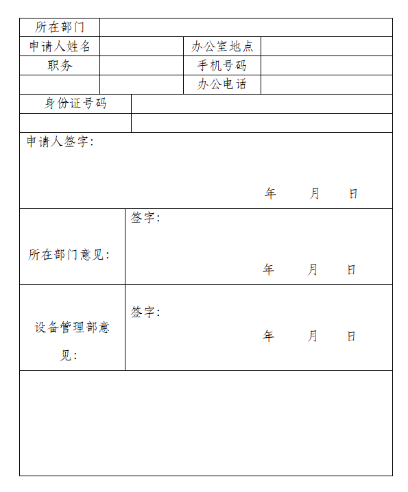 第十二条、校园各部门如需使用无线网络接入服务,应统一向图网中心提交申请,申请可以个人或部门为单位提交,申请人或部门需填写附件《无线入网申请登记表格》(下附表)登记上报批准后,统一由图网中心负责开通服务。