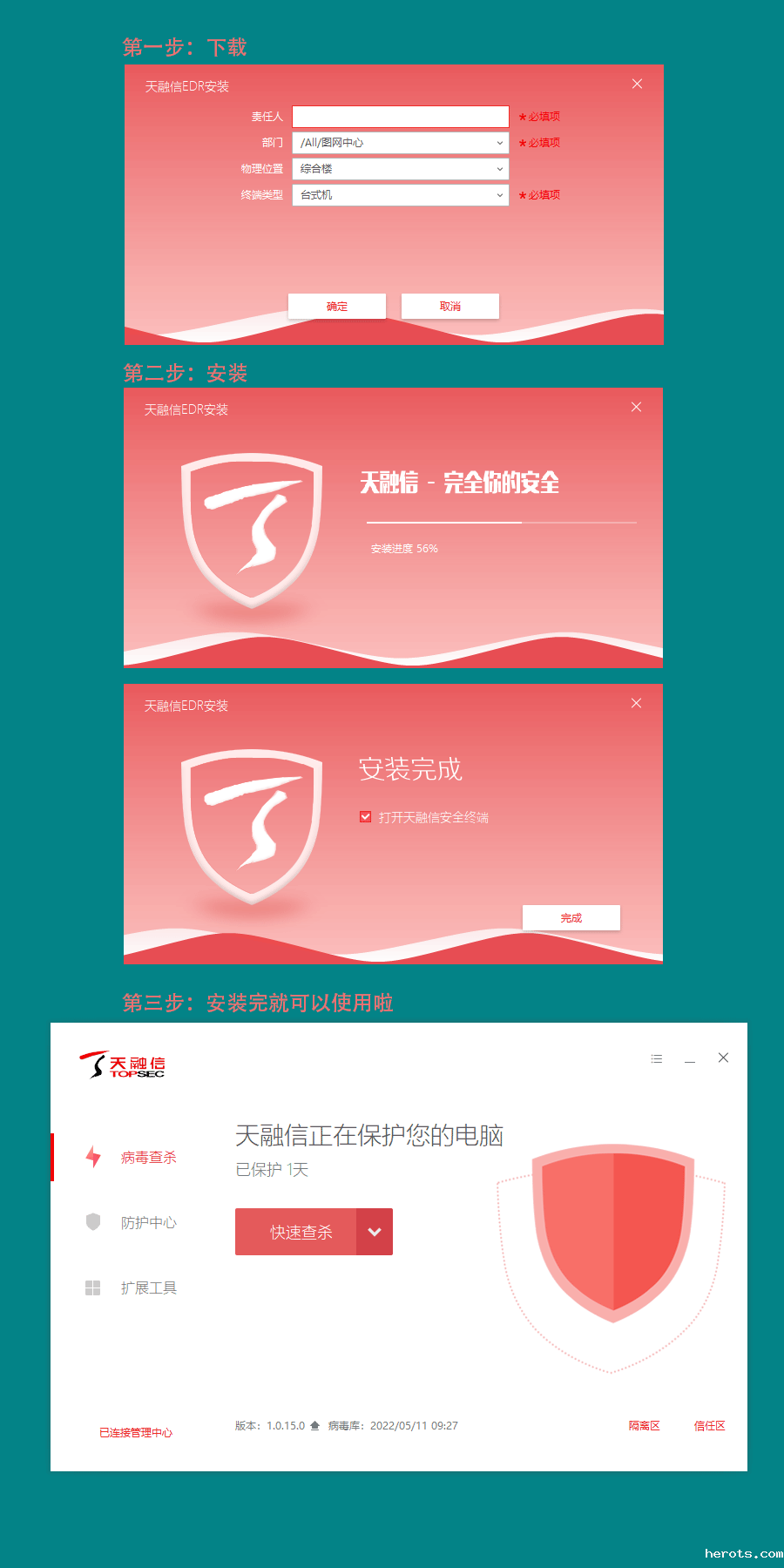 根据我省正版化软件管理办法,同时提高我院电脑运行速度,减少木马病毒的爆发几率,学院今年购买了天融信终端威胁防御软件。现请大家主动安装,在校办公电脑需要做到无一遗漏。此项工作为信息化建设考核工作的重要指标,请大家严格执行。如有技术问题,请联系图网中心运维服务部 86062719 86665038