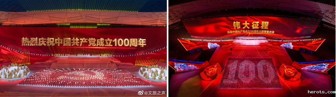 演出以大型情景史诗形式呈现,共分为四个篇章,综合运用多种艺术手段,生动展现中国共产党百年来带领中国人民进行革命、建设、改革的壮美画卷,热情讴歌党的十八大以来,在以习近平同志为核心的党中央坚强领导下,中国特色社会主义进入新时代,昂首阔步迈向全面建设社会主义现代会国家的新征程。