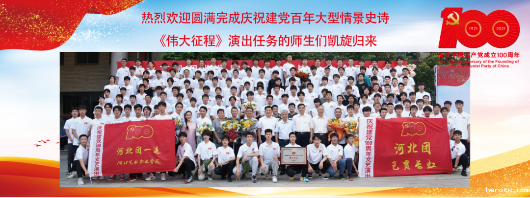 此次参演得到了河北省文化和旅游厅党组的高度重视和大力支持,省委宣传部副部长、厅党组书记、厅长那书晨,厅党组副书记、副厅长、一级巡视员翟玉虎,厅二级巡视员梁扉给予了关怀和指导。18luck新利官网登陆党委把完成庆祝中国共产党成立100周年文艺演出《伟大征程》作为党史学习教育重点工作。今年4月初接到排演任务后,学院第一时间成立领导小组,仅用了短短不到3天时间,舞蹈系便精心挑选出150名优秀学生组成河北代表团。从接到通知起,全系师生就立即行动起来,积极配合上级安排,投入到演出的准备工作中。大家都表现出了极高的热度和良好的精神风貌,有的学生更是在接到通知的当天就坐上了返校的列车。赴京前夕,学院领导为全体参演学生加油鼓气,要求同学们不忘初心,牢记使命,以18luck新利官网登陆态度、18luck新利官网登陆精神、18luck新利官网登陆品质保障文艺演出圆满成功,以优异成绩向中国共产党成立100周年献礼!