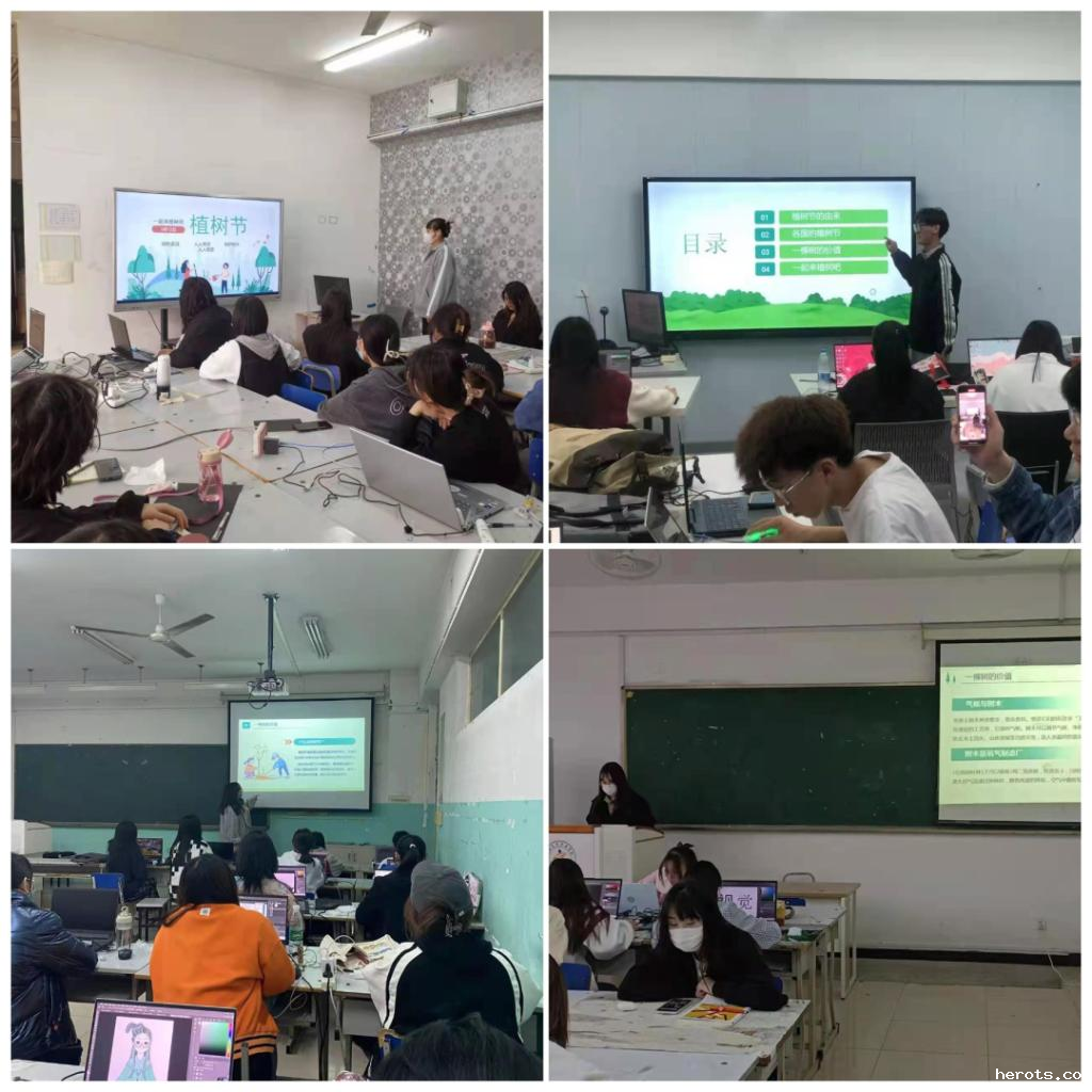 我的地盘我做主,我们的世界我守护。为保护生态环境,让大家明白植树节的意义,美术系学生在辅导员的指导下制作PPT,自行组织召开植树节主题班会。