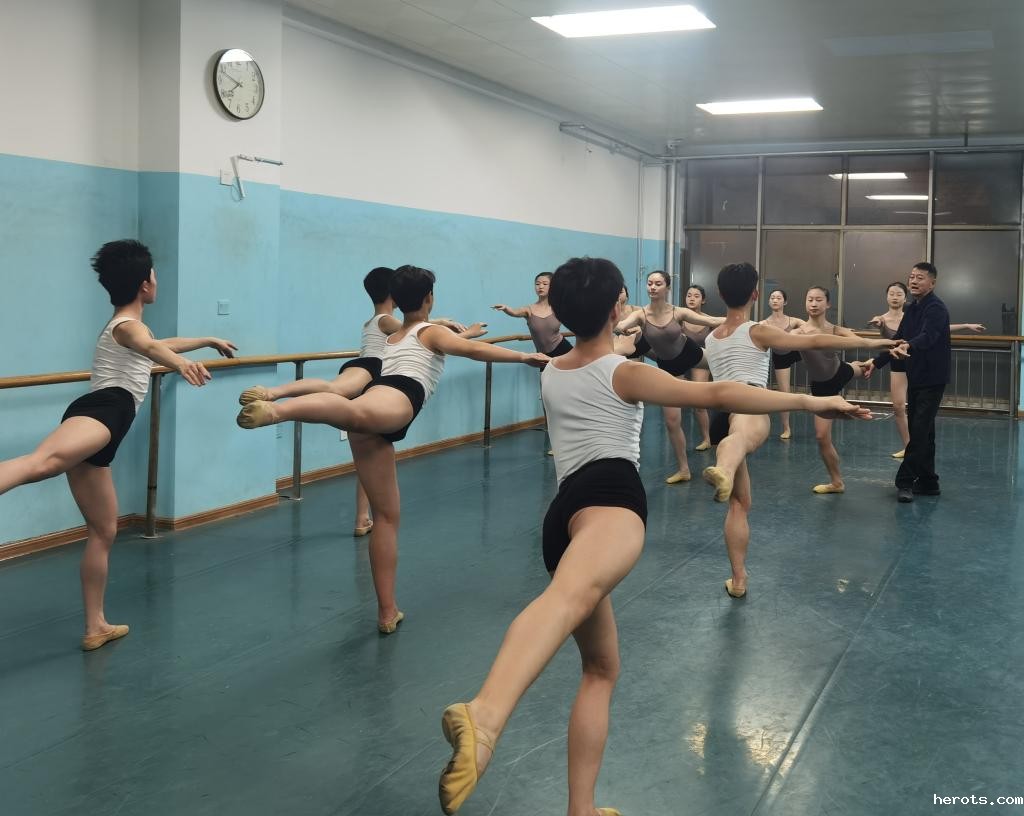 王占良老师为国标舞班学生教授舞蹈基本功训练课