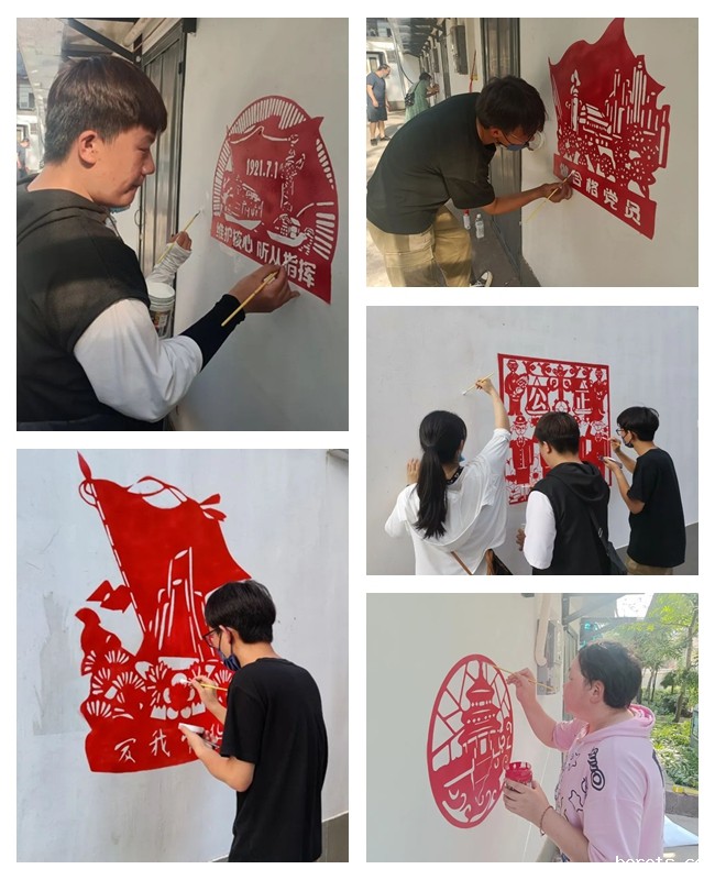 为庆祝中国共产党建党101周年,迎接党的二十大胜利召开,18luck快乐彩美术系党支部组织党员教师及青年学生7月上旬在省艺校宿舍小区开展了红色墙绘社会实践活动,弘扬家国情怀,爱心服务社会。