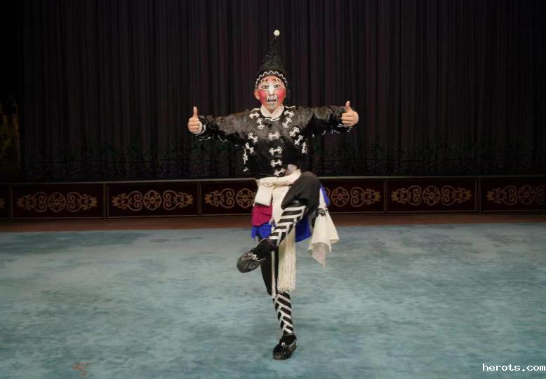 河北梆子《时迁盗甲》剧目的指导教师为张通老师。这是武丑行中唯一一出念韵白的戏,全剧不但有“单蛮子前坡”、“跟斗下高”、“矮子”等高难技巧,还有大段南曲,可谓唱中带舞,舞中带技。正因如此,在当今戏曲舞台上《时迁盗甲》一剧也是极为稀有,有一定的传承和教学价值。