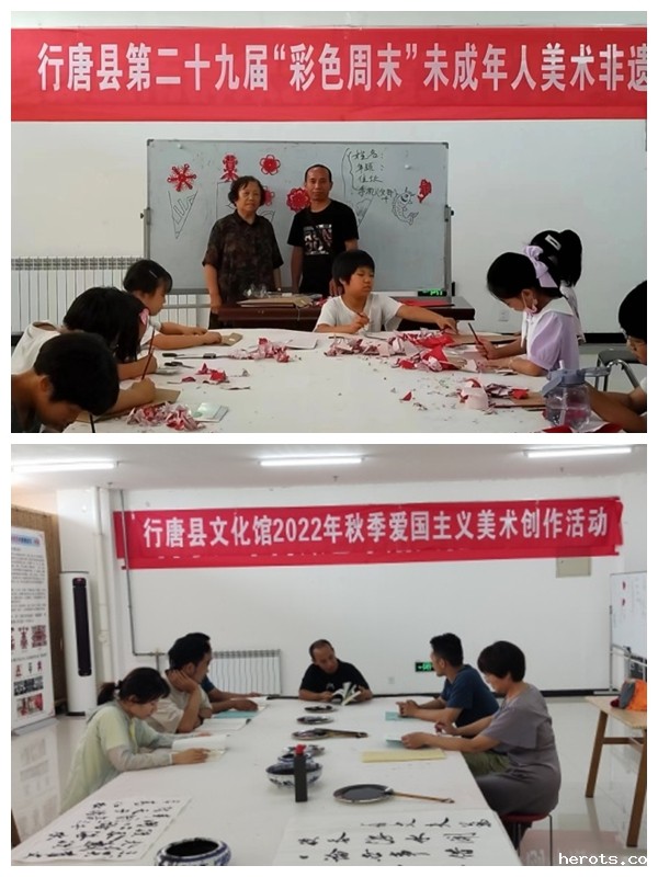 在行唐县,杜志喜老师与县文化馆的工作人员通过调研、参观、座谈等方式,多方搜集创作素材,共同策划了系列主题活动。弘扬中华优秀传统文化的“行唐县第29届彩色周末未成年人美术非遗培训班”、“勿忘历史,珍爱和平”美术创作活动、“喜迎二十大·翰墨颂祖国”美术书法作品展等,从不同角度、不同层面,表达了对党、对祖国、对家乡的热爱和对美好生活的赞美,展现了全县人民奋进新征程、建功新时代的壮志豪情。