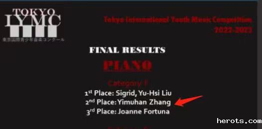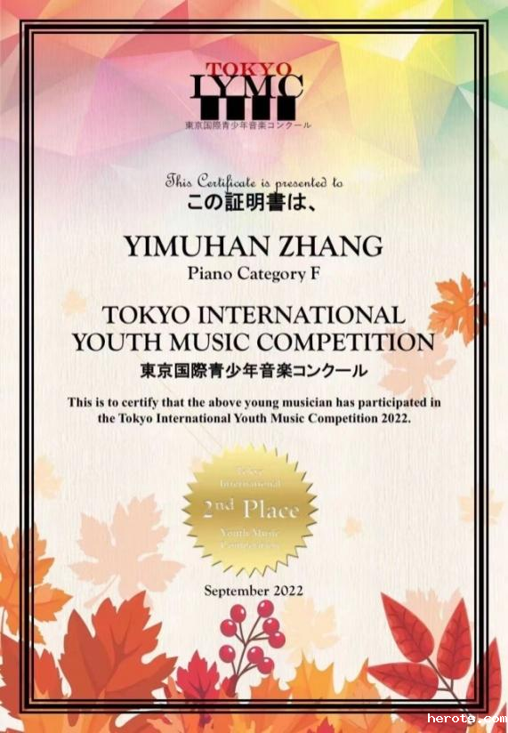18luck新利官网登陆学子张翊睦涵获得2022日本东京青少年国际音乐比赛钢琴少年组第二名