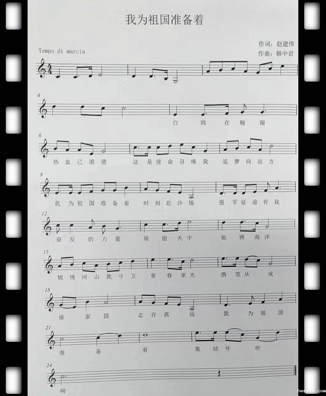 该作品由学院影视系党支部专职副书记赵建伟老师作词,特约音乐系韩中岩老师作曲,影视系石鹏飞、音乐系王紫然两位老师共同担任音乐统筹,影视系大学生合唱队演唱。作为“二十大主题”献礼作品,歌词以大学生励志携笔从戎的视角,抒发了时刻准备为祖国奔赴沙场的壮志豪情。