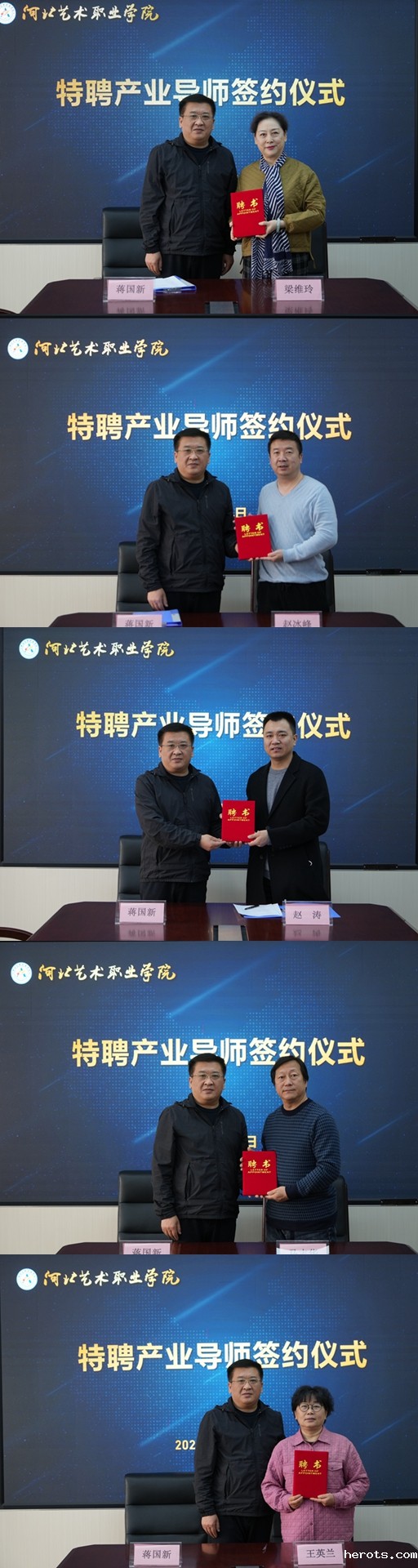 2月24日上午,18luck快乐彩举办了特聘产业导师签约仪式,中国戏剧梅花奖获得者、一级演员梁维玲,河北省歌舞剧院演艺有限公司副经理、一级导演赵冰峰,河北省艺术中心艺术总监、一级指挥赵涛,河北省话剧院一级舞美设计师马志华,河北省档案馆副研究馆员王英兰受聘成为学院特聘产业导师。蒋国新院长出席签约仪式,仪式由延凤宇副院长主持,人事处、教务处及相关专业系负责人参会。
