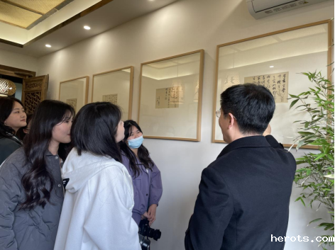 任源老师介绍道,为探索新型城市公共文化空间建设,石家庄已建立五十二座文化名家工作室,涵盖书法、美术、戏曲、写作、音乐等领域,希望同学们在学业之余,多到艺术空间中感悟名家风采,享受文化的魅力,同时也为自己的大学生活增加艺术的美感、文化的厚度,成为一名优秀的文化艺术汲取者、传播者。在活动最后,任源老师提笔写下了“学无止境”四个大字,勉励全体同学在专业的学习中不断努力、勇攀高峰、不畏困难、奋进不止。