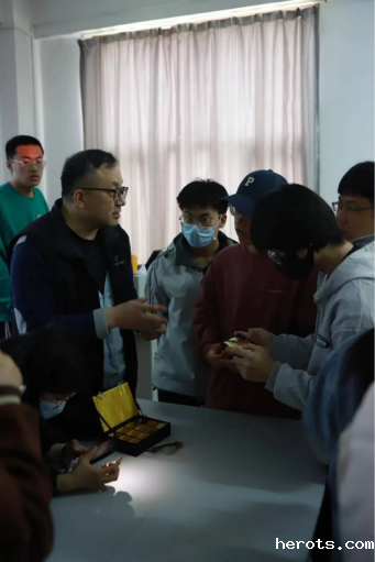 杜卫民老师先后在国家文物局文物流通中心(文物商店总店),国家博物馆藏品保管部、策展部、研究部工作,集陶瓷玉器鉴定与市场定价经营管理能力于一身。在讲座中,杜老师以中国传统玉石器为切入点,为同学们带来了一场横亘古今、融汇中外的玉石饕餮盛宴。杜老师从玉器的概念、玉石的类别、玉器雕刻工艺和用途等角度,图文并茂地讲解了世界各国典型玉石及其背后的故事。他还按照玉石的不同类别,甄选出部分从北京带来的个人藏品进行实物展示与讲解。同学们十分珍惜这次难得的机会,分批次涌到台前观摩把玩,久久不愿离去。