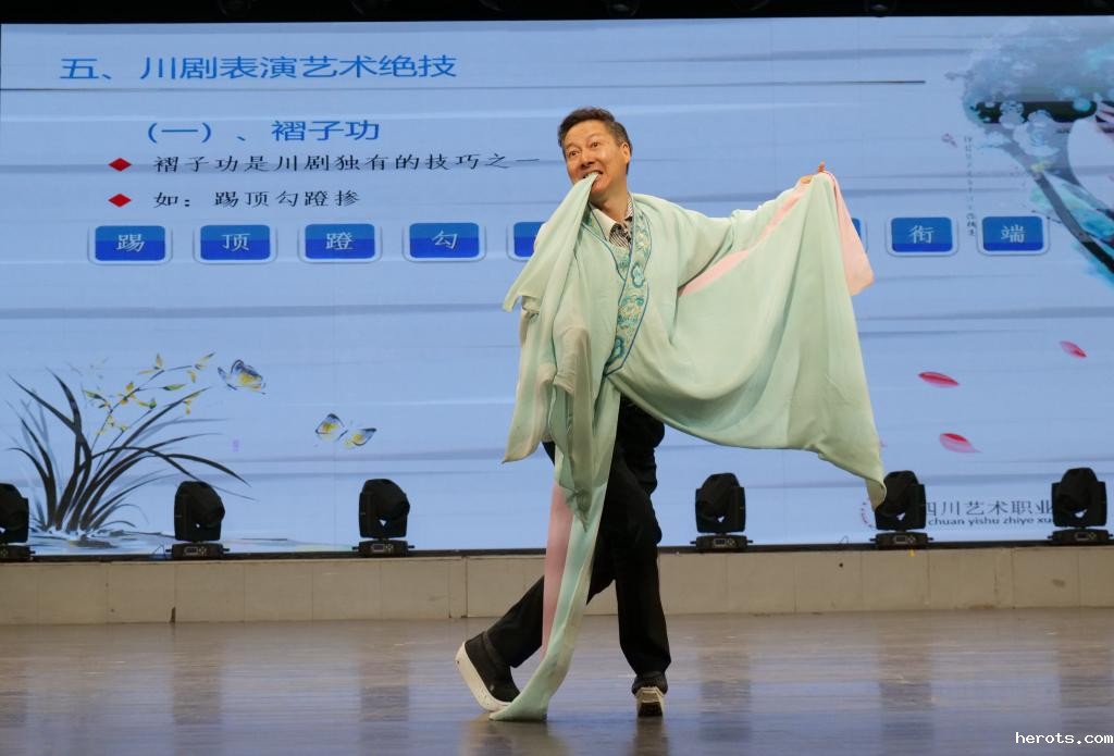 在学院深入开展学习贯彻习近平新时代中国特色社会主义思想主题教育之际,5月6日下午,四川艺术职业学院青年艺术团团长肖得美和第30届中国戏剧梅花奖获得者张燕莅临四楼18luck新利官网登陆剧场,为我院师生做了一场别开生面的主题讲座——《走近川剧艺术·共享非遗魅力》。